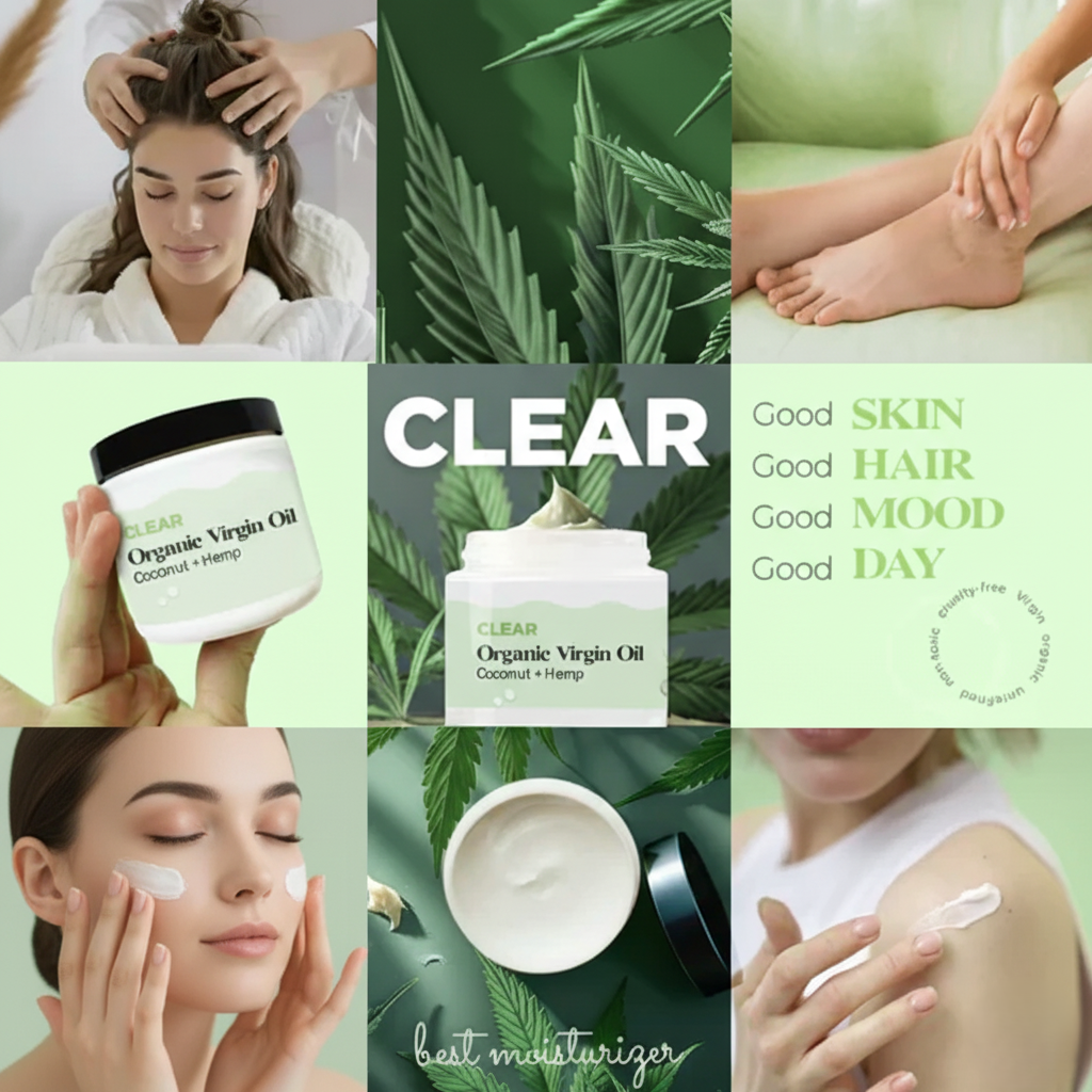 Clear’s Organic Coconut Oil & Hemp Moisturizer delivers powerful, plant-based hydration to repair and nourish dry skin, hair, and nails. Formulated with organic coconut oil and hemp seed extract, this antioxidant-rich blend deeply moisturizes without clogging pores or leaving a greasy finish. It absorbs quickly, helping soothe irritation, reduce redness, and support skin barrier function making it ideal for sensitive, dry, or stressed skin. Use it as a full-body moisturizer, hair conditioner, or cuticle treatment. Safe for daily use on all skin types, this non-toxic, cruelty-free formula is proudly made in the USA with a commitment to clean, sustainable skincare. If you’re not completely satisfied, we’ll make it right—your skin and satisfaction come first.